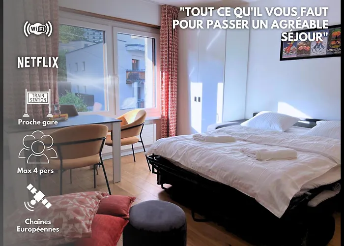 1-pokojowy Apartament La Perle Montana Crans-Montana oferuje łatwy dostęp do takich atrakcji turystycznych jak Cabaret Harrys Club Crans-Montana, położonych w maksymalnie 400 metrach. Aktywni Goście apartamentu o powierzchni 24 m² mogą korzystać z kija golfowego.